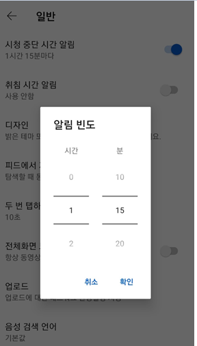 2. 시청 중단 및 시간 알람을 설정합니다.
