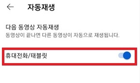 4. 자동재생에서 휴대폰/ 태블릿 우측을 슬라이드로 설정 해지 할 수 있습니다.