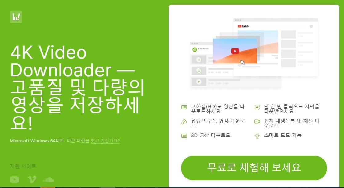 4K Video Downloader는 위의 공식 홈페이지에서 설치 파일을 무료로 다운로드하시면 됩니다.